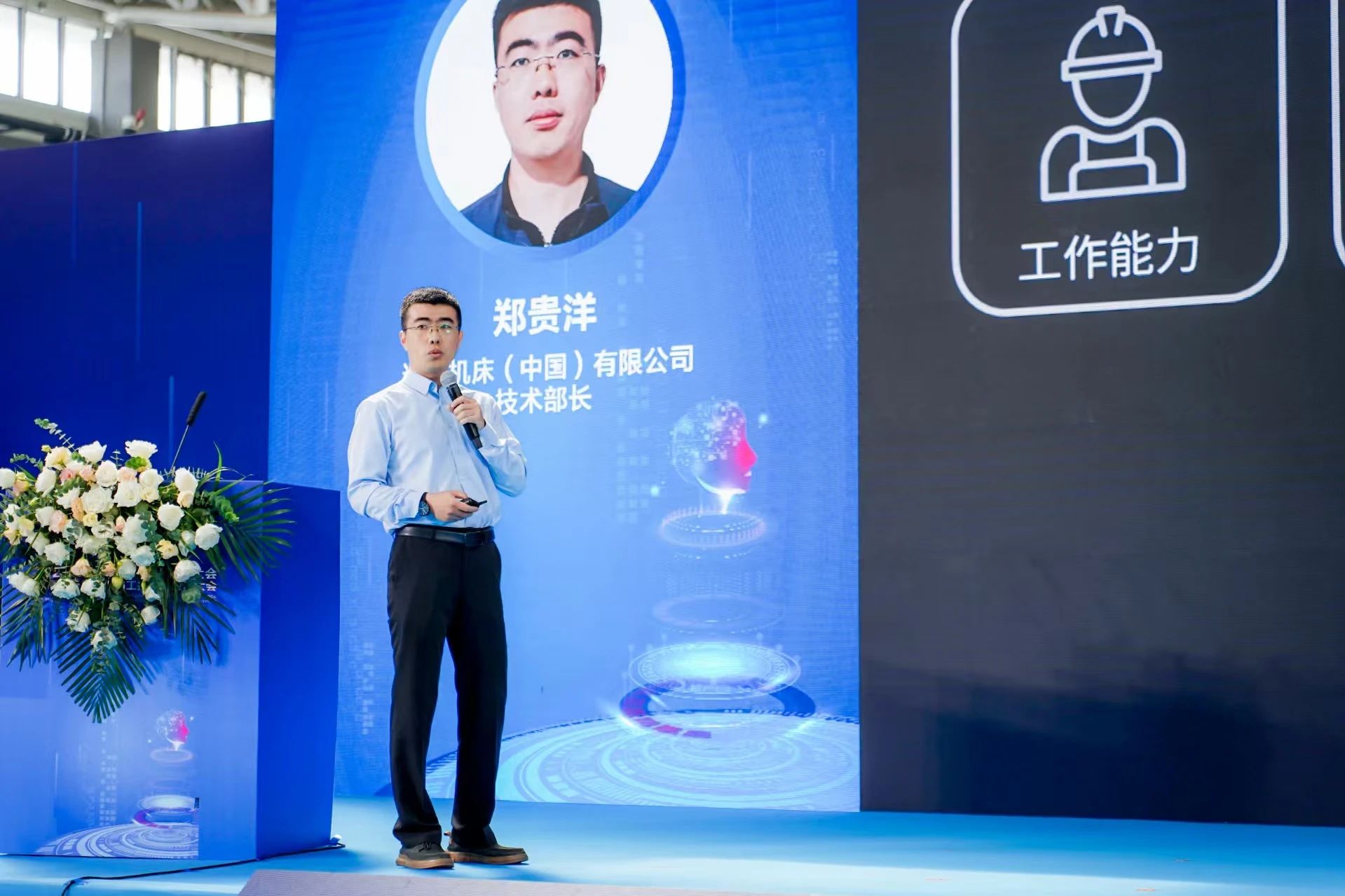 迪恩机床(中国)有限公司售前技术部郑贵洋部长发表主题为《智能化升级中的五轴加工中心策略与实践》的演讲,向与会人员充分介绍了迪恩机床先进的五轴机床和优秀的加工解决方案。